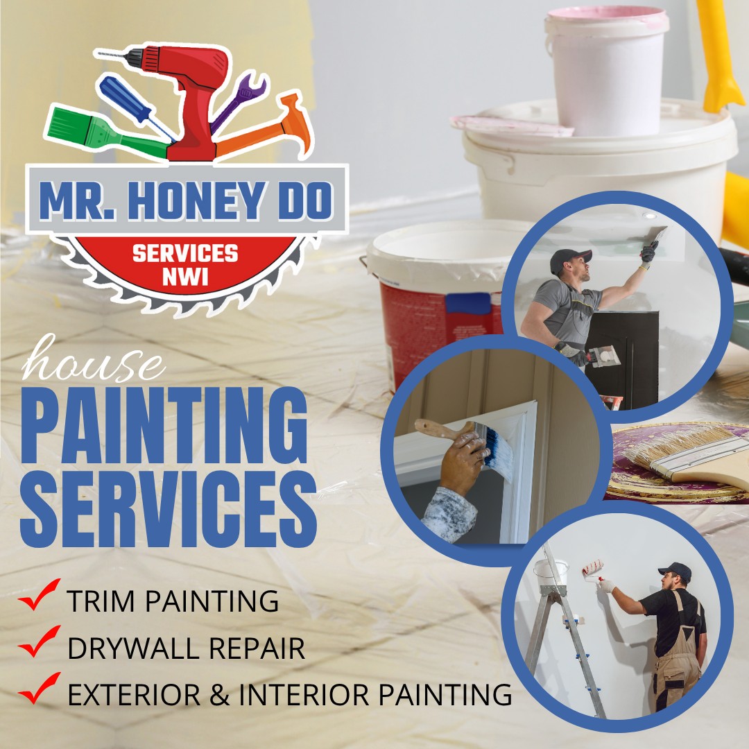 Mr Honey Do Services is here for all your painting & drywall needs! Get drywall repair and paint that actually matches. Call us today to schedule an appointment! #drywallrepair #drywallpatch #trimpainting #handymanservices #homeupgrades #homerepairs